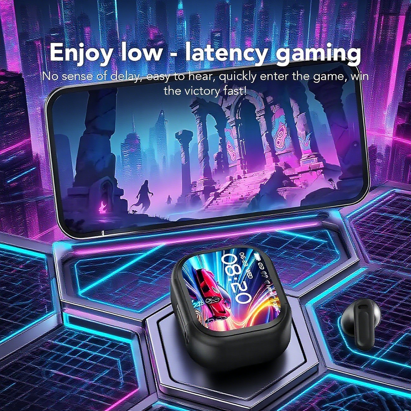 Enjoy up to 6 hours of continuous playtime on a single charge, plus an additional 18 hours with the charging case – giving you a full day of uninterrupted music, calls, or gaming.