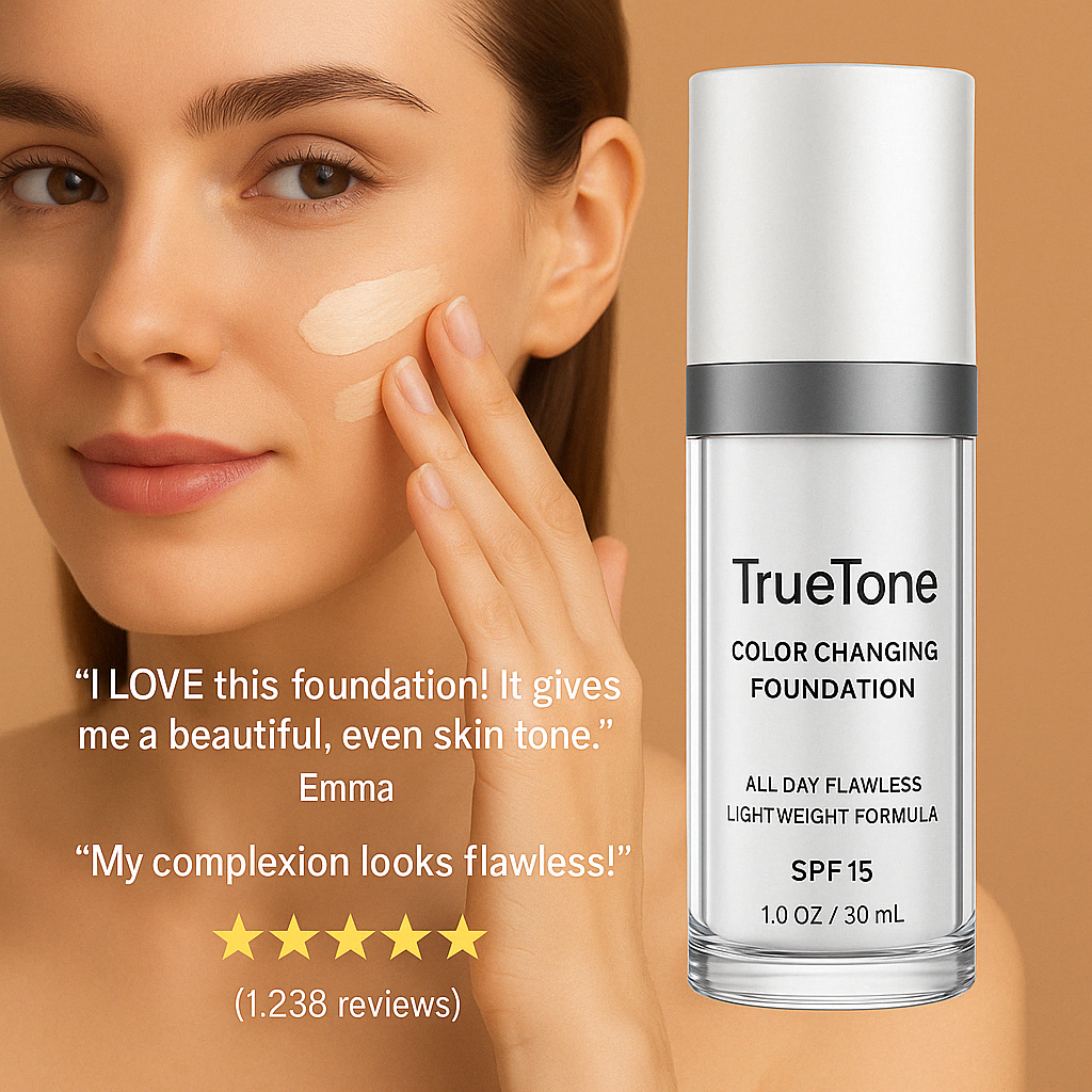 Imagine a foundation that effortlessly adapts to your unique skin tone, concealing imperfections and revealing your natural radiance. TrueTone Foundation is the revolutionary color-changing formula designed specifically for mature skin, delivering a flawless, youthful complexity without the guesswork of shade matching.