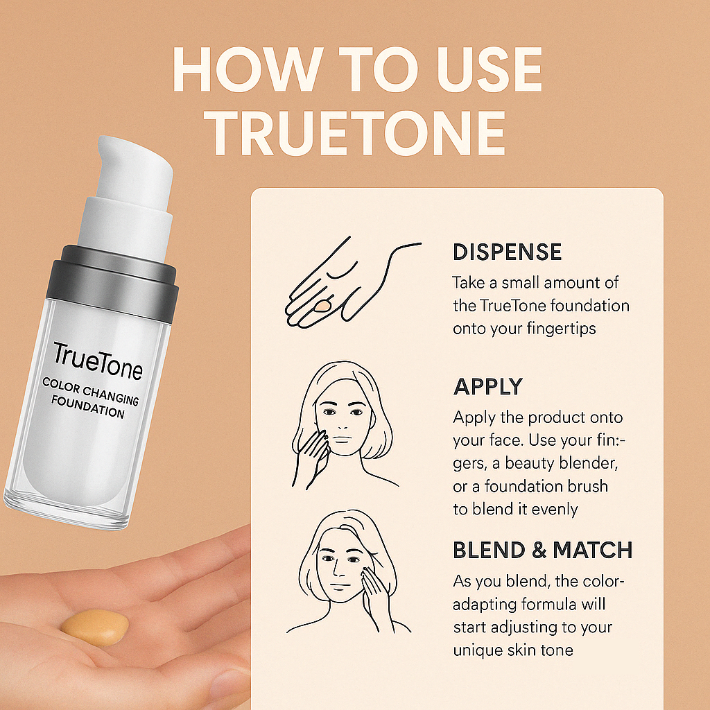 Simply apply a small amount of TrueTone Foundation to your skin and blend evenly using your fingertips, a brush, or a sponge.